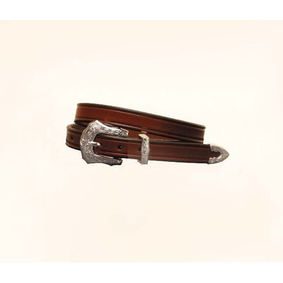 Plain Creased Belt/3Pc Silver Buckle Set 24 Brn