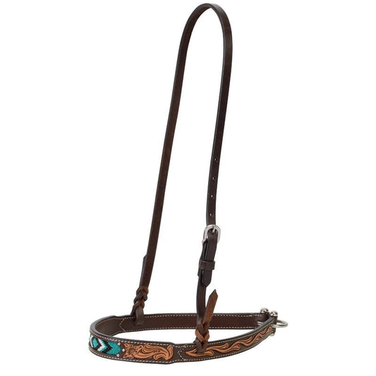 Weaver Turq Cross 1in Floral Carved Noseband