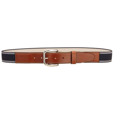 Tory Elastic Belt with Leather Billets 28 Navy White