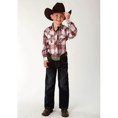 Roper Boys Plaid Snap Western Shirt - Rust