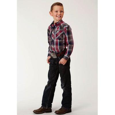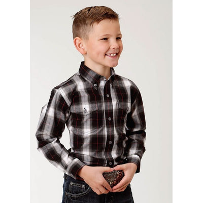 Roper Boys Red Canyon Shirt SM Black Plaid