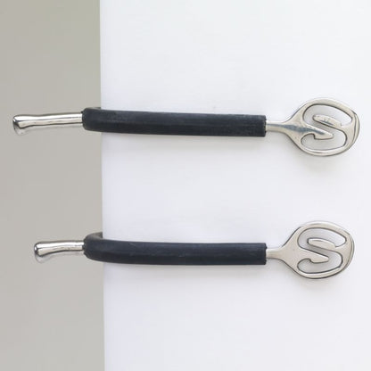 The S shaped eyelet ideally positions the spur strap, while the rubber grips secure them to the boots.