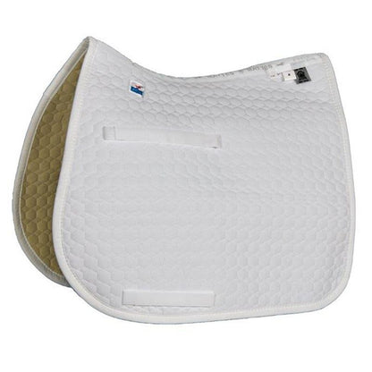 The core of the numnah is made of two layers: POLY-FLEX® (a deep-needled polyester felt) is used to maintain the shape and spread the pressure, while polyester wadding provides padding. We completely avoid foam, neoprene or gel, making the whole pad breathable.