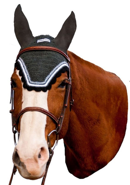 Equine Couture Fly Bonnet wSlv Lurex Cob Blk/Wht