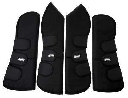 These deluxe shipping boots feature a tough 1000 Denier outer shell with soft fleece lining and extended knee protection, plus wide tab Velcro closures for easy application. Each set of four boots is sized for an average horse.