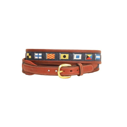 Tory Padded Leather Nautical Belt 26in Bk/Gry